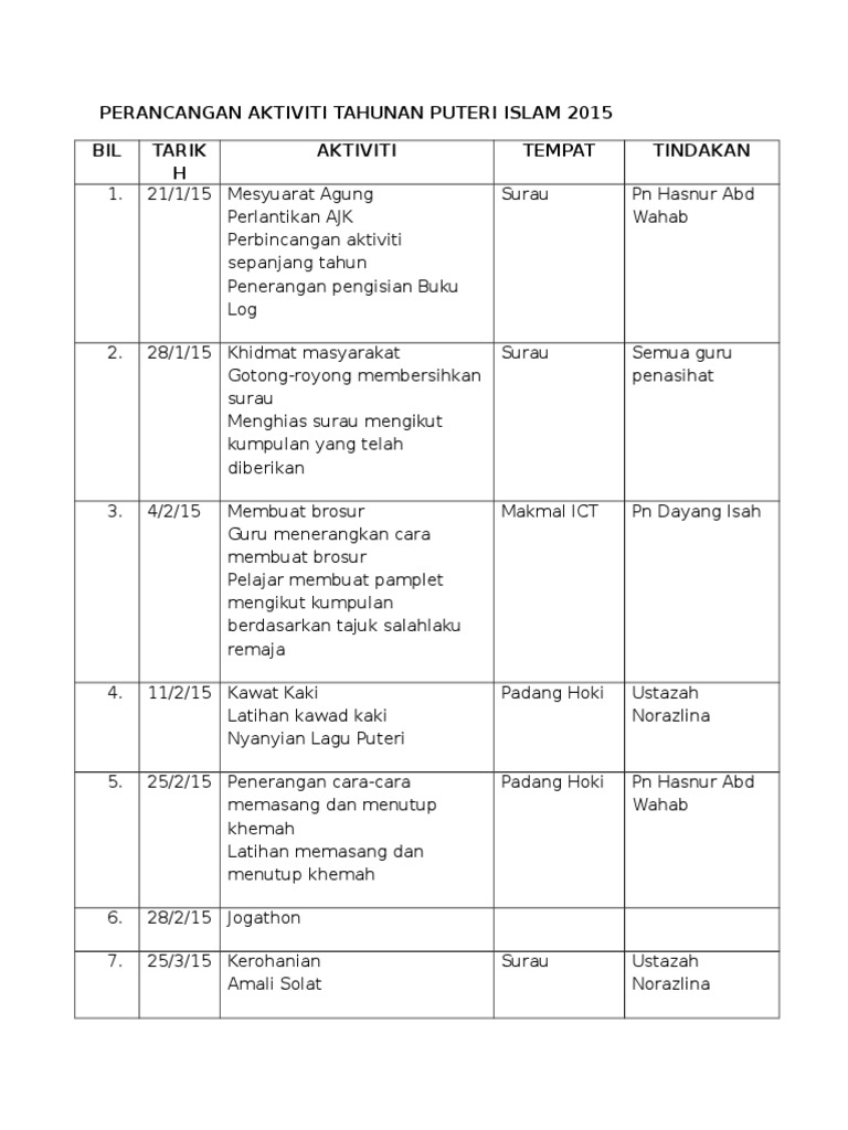 Perancangan Aktiviti Tahunan Pergerakan Puteri Islam Malaysia Pdf